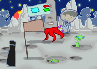 The game consists of 5 levels.Your adventures transpire everywhere from a farm to outer space. With a pencil in our hand, and a song in our hearts, we set out for the Moon.